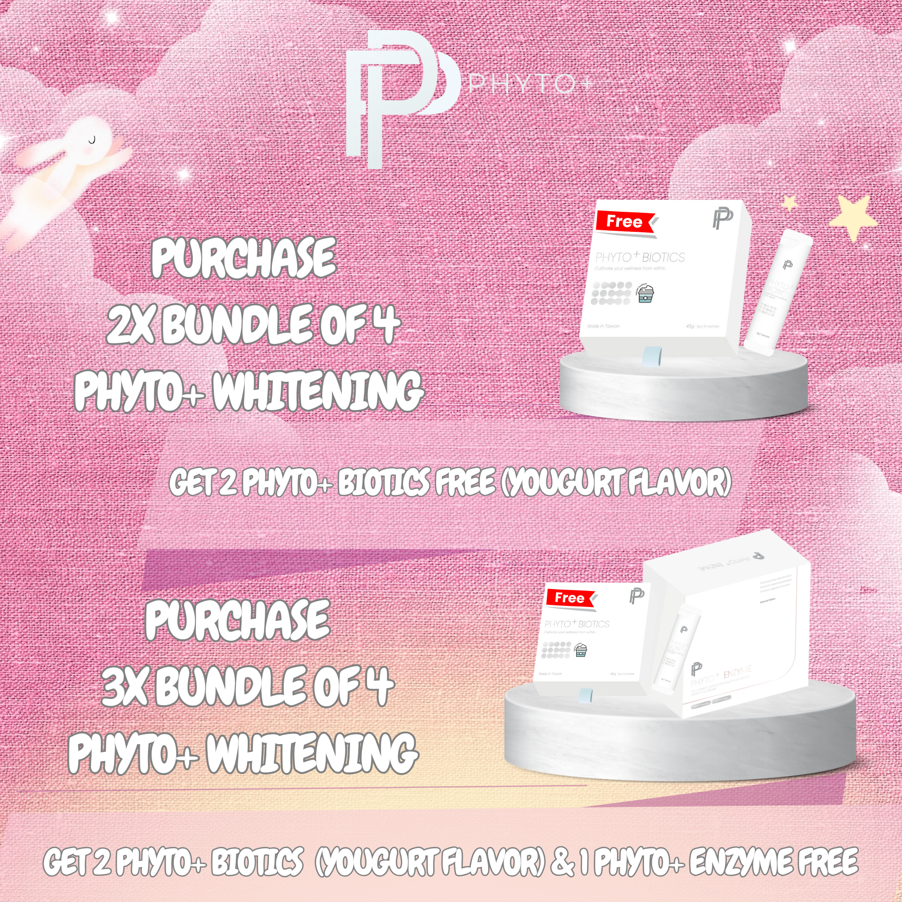 PHYTO+ Whitening Drink is a premium daily supplement formulated with patented U.S. technology and proudly manufactured in Taiwan. Designed to improve overall skin quality, each sachet is enriched with key nutrients including PhytoflORAL®, Glutathione, L-Cystine, and Rosa Roxburghii Tratt—ingredients known for their skin-brightening and radiance-boosting properties. For optimal results, consume two sachets daily—one in the morning and one before bedtime. This regimen helps enhance biomolecular activity, minimize collagen degradation, and promote skin smoothness and elasticity. Achieve a luminous, flawless complexion with PHYTO+ Whitening Drink.